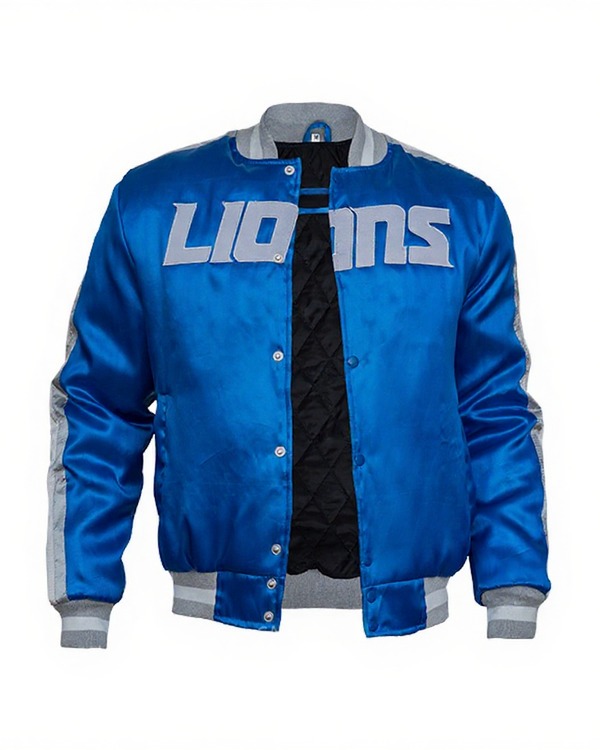 The jacket is meticulously crafted from high-grade satin fabric, giving it a lustrous finish and a lightweight feel. To ensure maximum comfort, the interior is lined with a smooth viscose material. The design features a traditional button closure and sporty ribbed detailing on the collar and cuffs for a secure, athletic fit. Whether you are searching for a Calvin Johnson lion varsity jacket to complete your fan collection or a stylish bomber for everyday wear, this piece offers a polished look with two functional waist pockets and a timeless silhouette.