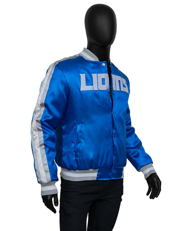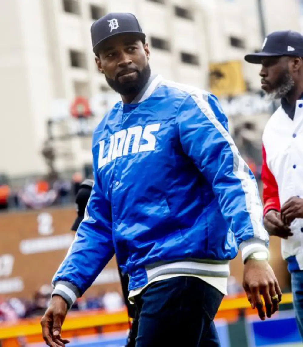 Honor the legacy of “Megatron” with the Calvin Johnson Detroit Lions blue jacket, a premium tribute to one of the greatest wide receivers in NFL history. This jacket captures the elite athletic aesthetic often seen during Calvin Johnson’s legendary appearances and team events. If you are a fan looking for a high-quality Calvin Johnson Detroit Lions jacket, this sleek satin piece delivers the perfect combination of sports heritage and modern streetwear. The vibrant Honolulu Blue colorway and classic team branding make it an essential item for game days at Ford Field or casual city outings, ensuring you represent the Lions with the same dominance as Johnson himself.
