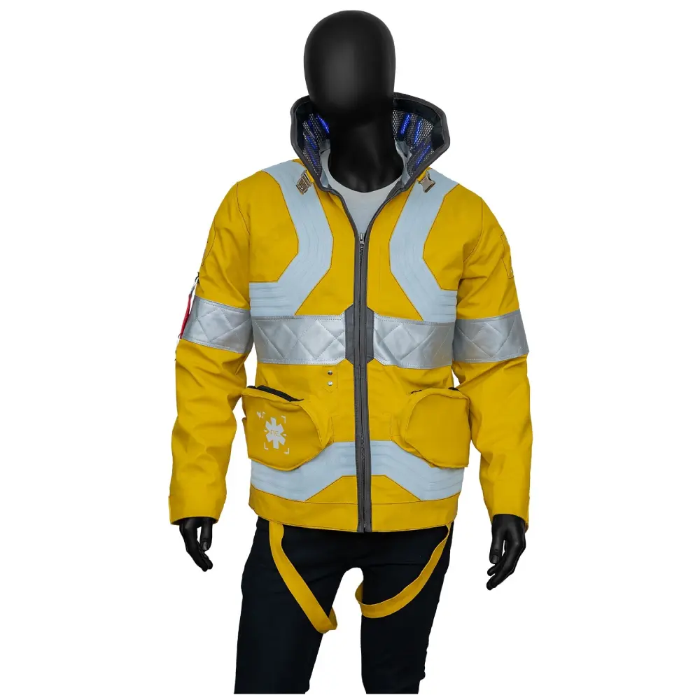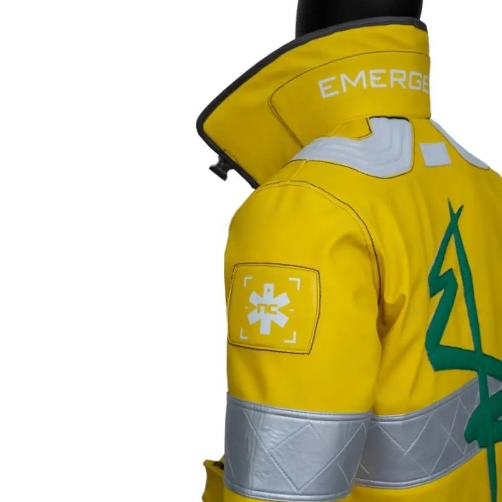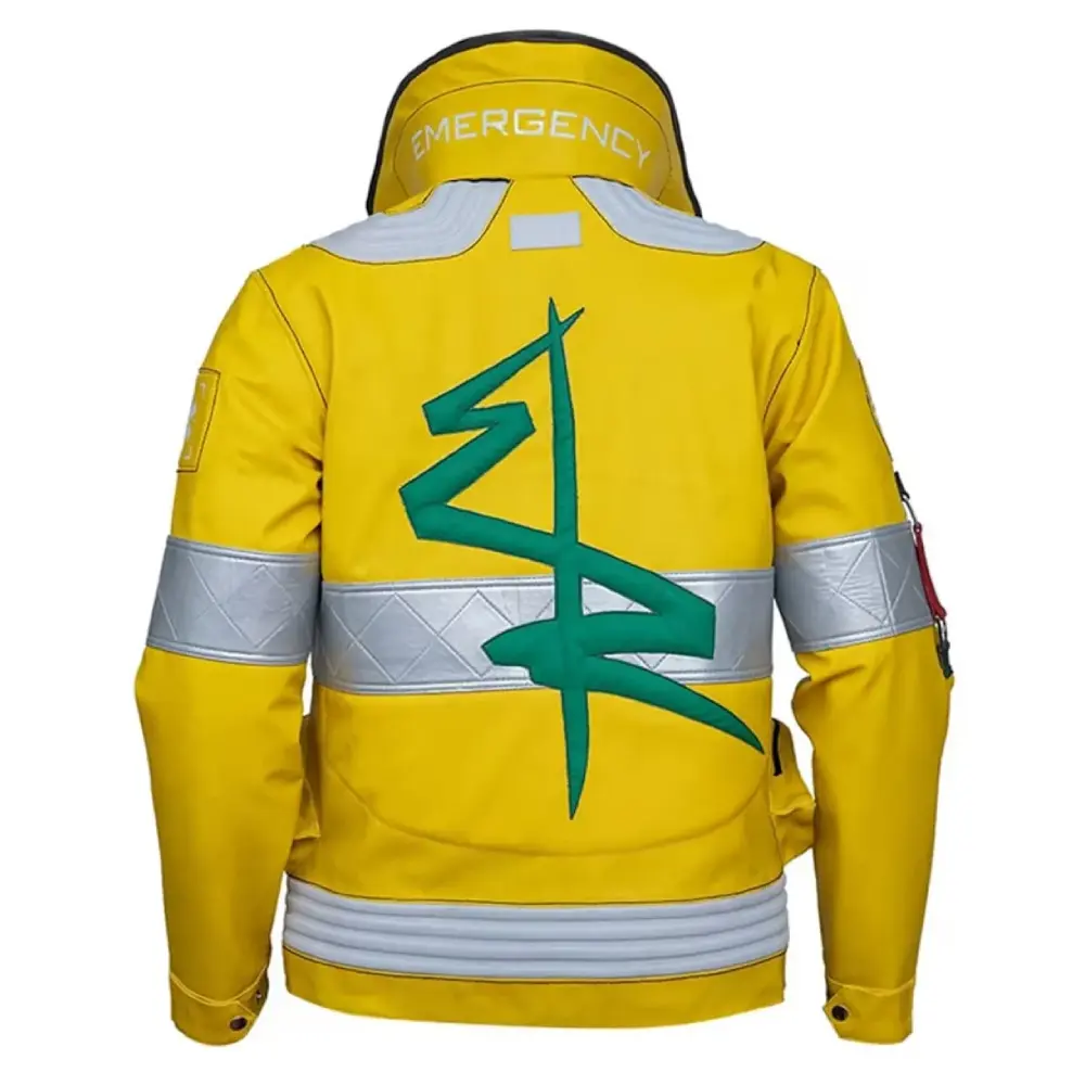Our David Martinez jacket captures every detail from the Cyberpunk 2077. The collar features Functional LED lights that actually work, giving you that cool cyberpunk glow. The back showcases the green Edgerunners logo, while the back of the collar has “Emergency” text. Made with high-quality yellow faux leather for comfort, durability and premium feel.