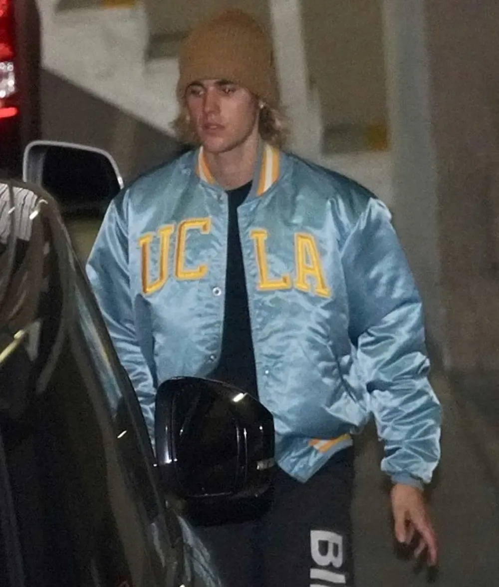 Be the first to review “Justin Bieber UCLA Satin Bomber Jacket”