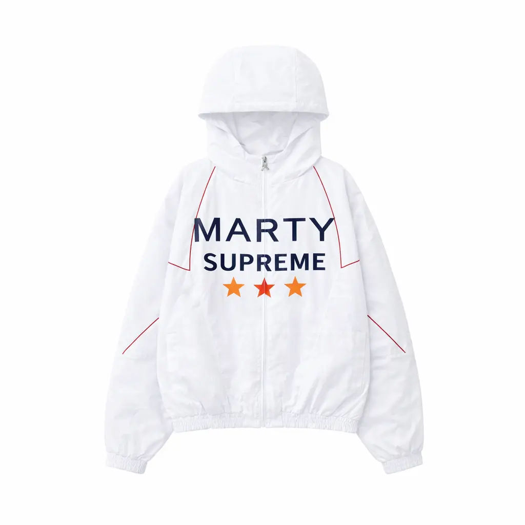• The chest features “MARTY SUPREME” branding with three stars, and red piping.