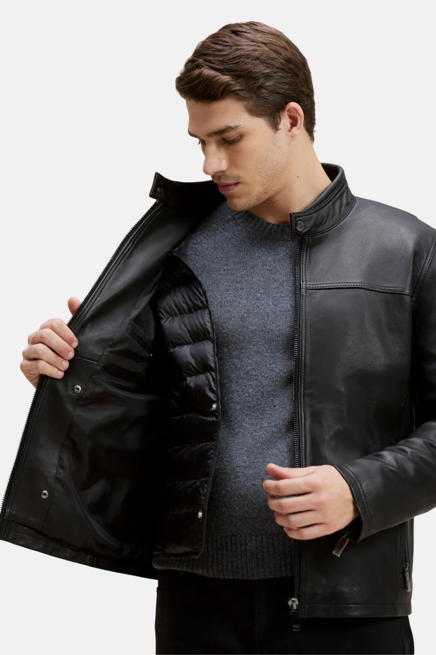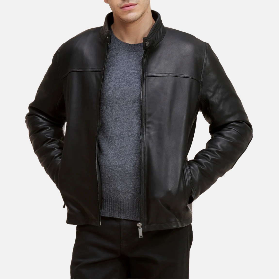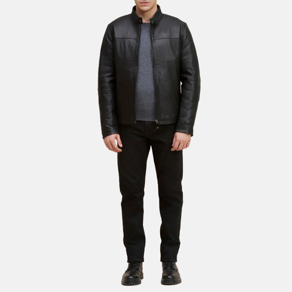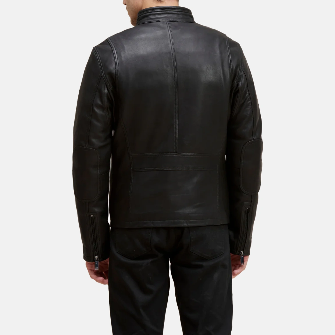 Men’s Black Moto Leather Jacket with Chest Yoke Design
