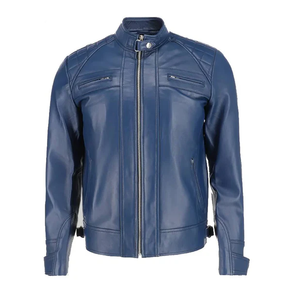 Be the first to review “Men’s Blue Cafe Racer Leather Jacket”