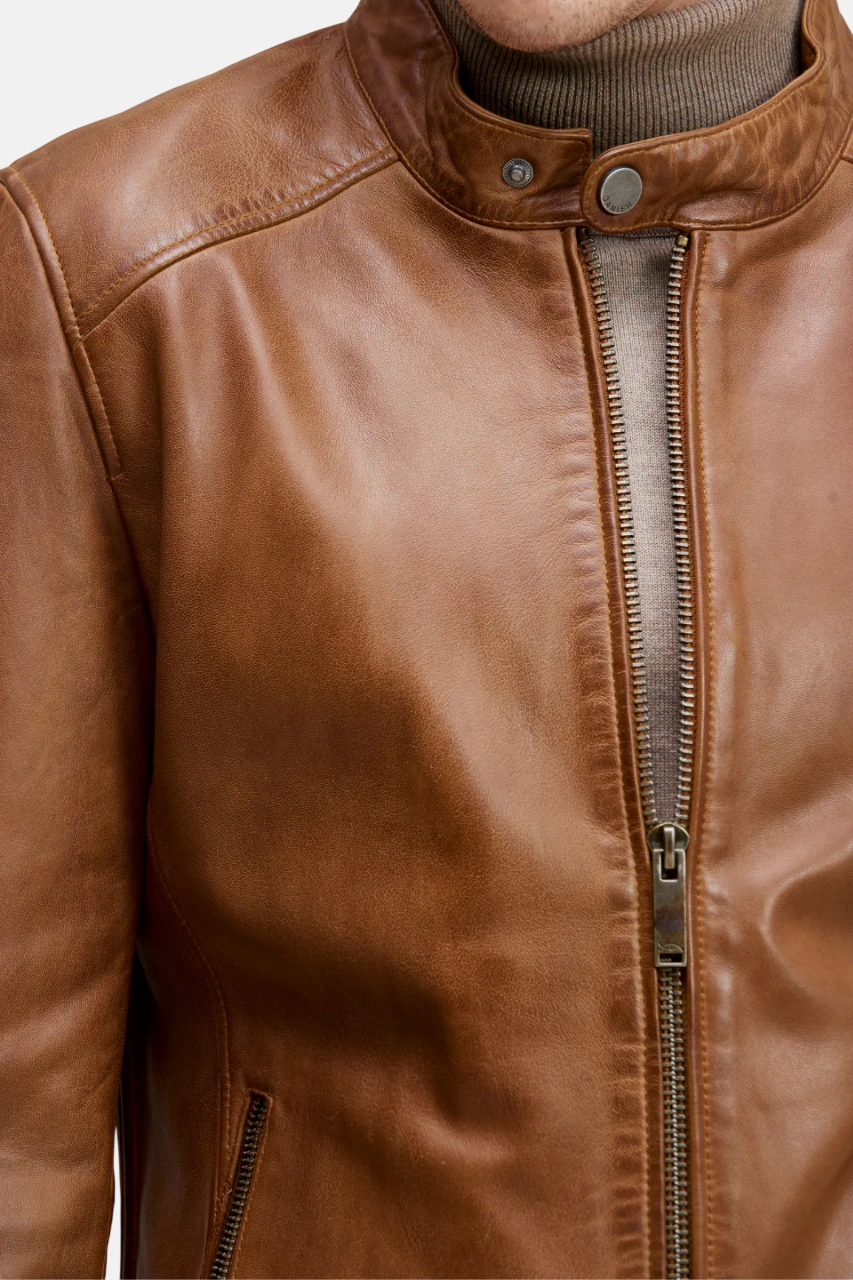 Men’s Brown Cafe Racer Leather Jacket