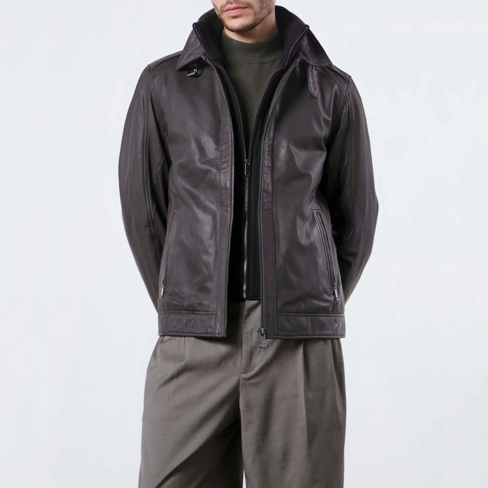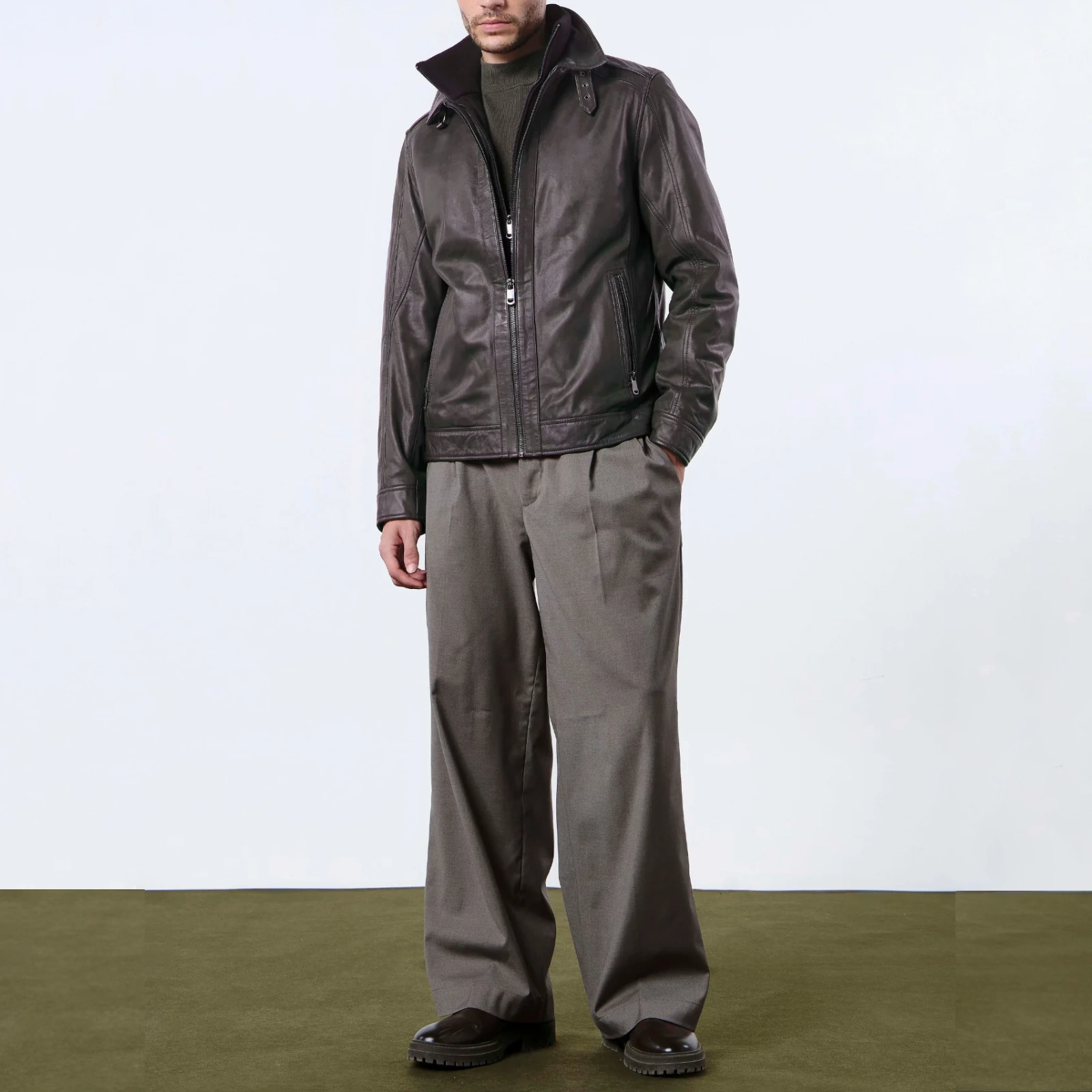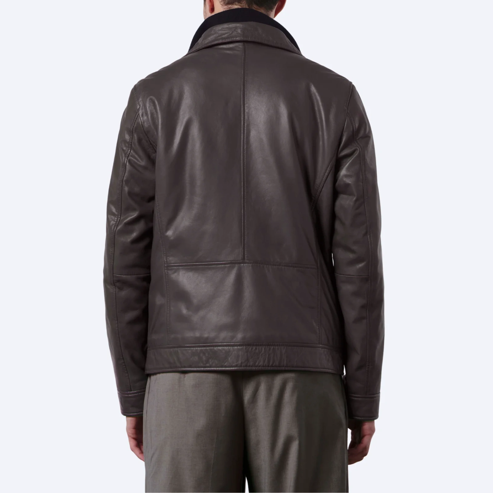 Men’s Dark Brown Leather Bomber Jacket with Hybrid Design