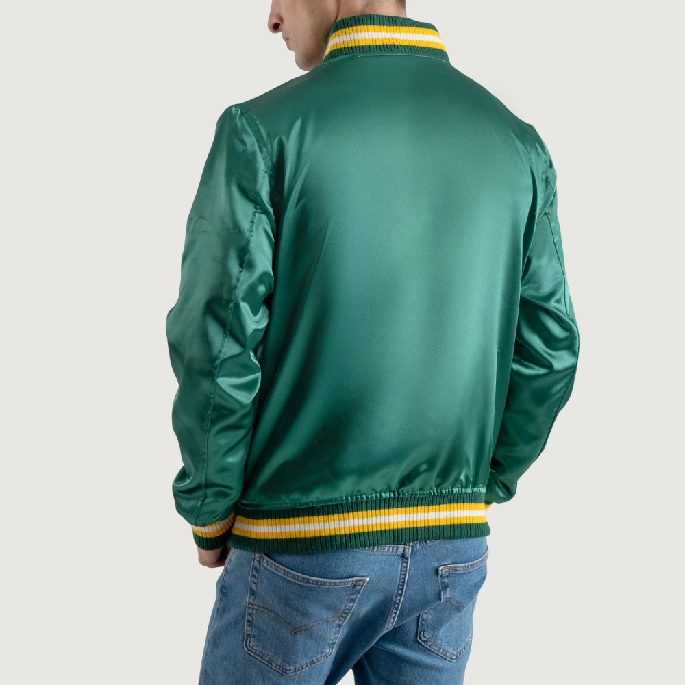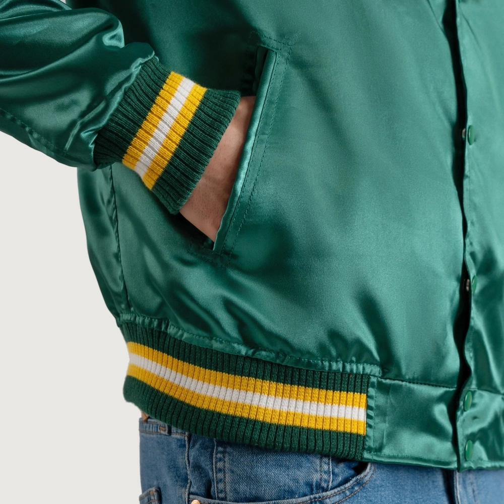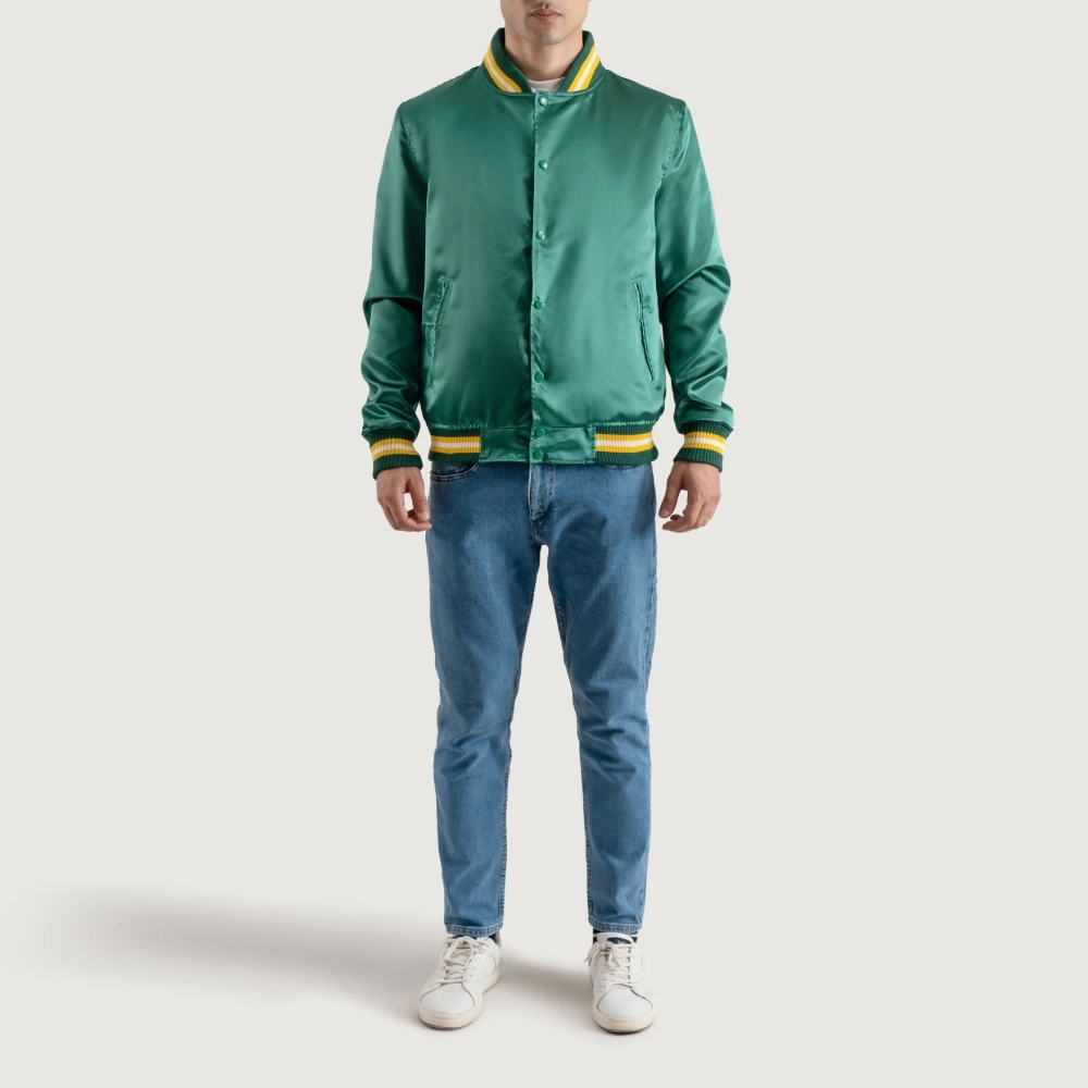 Men’s Forest Green Satin Jacket with Yellow Stripes