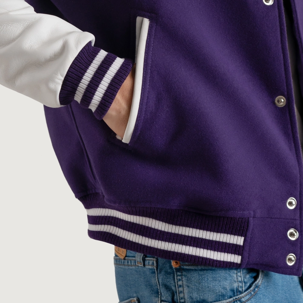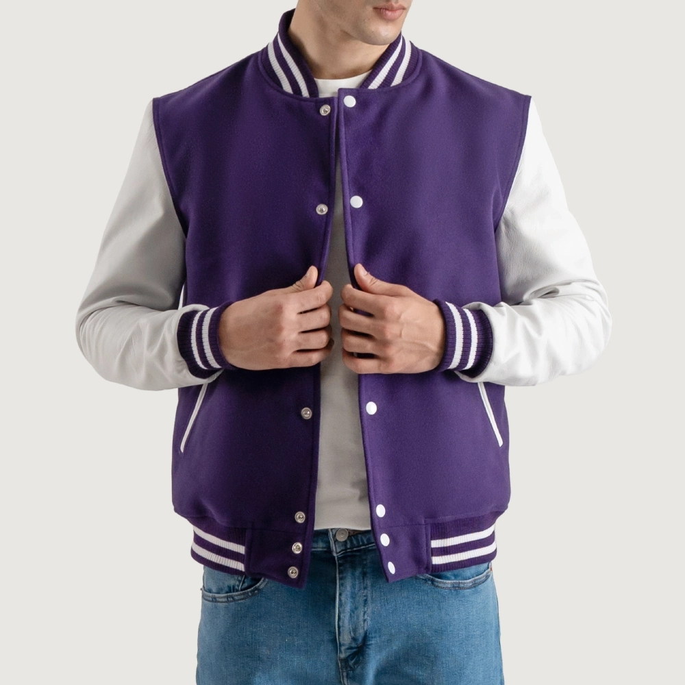 Men’s Purple Wool & White Leather Varsity Jacket