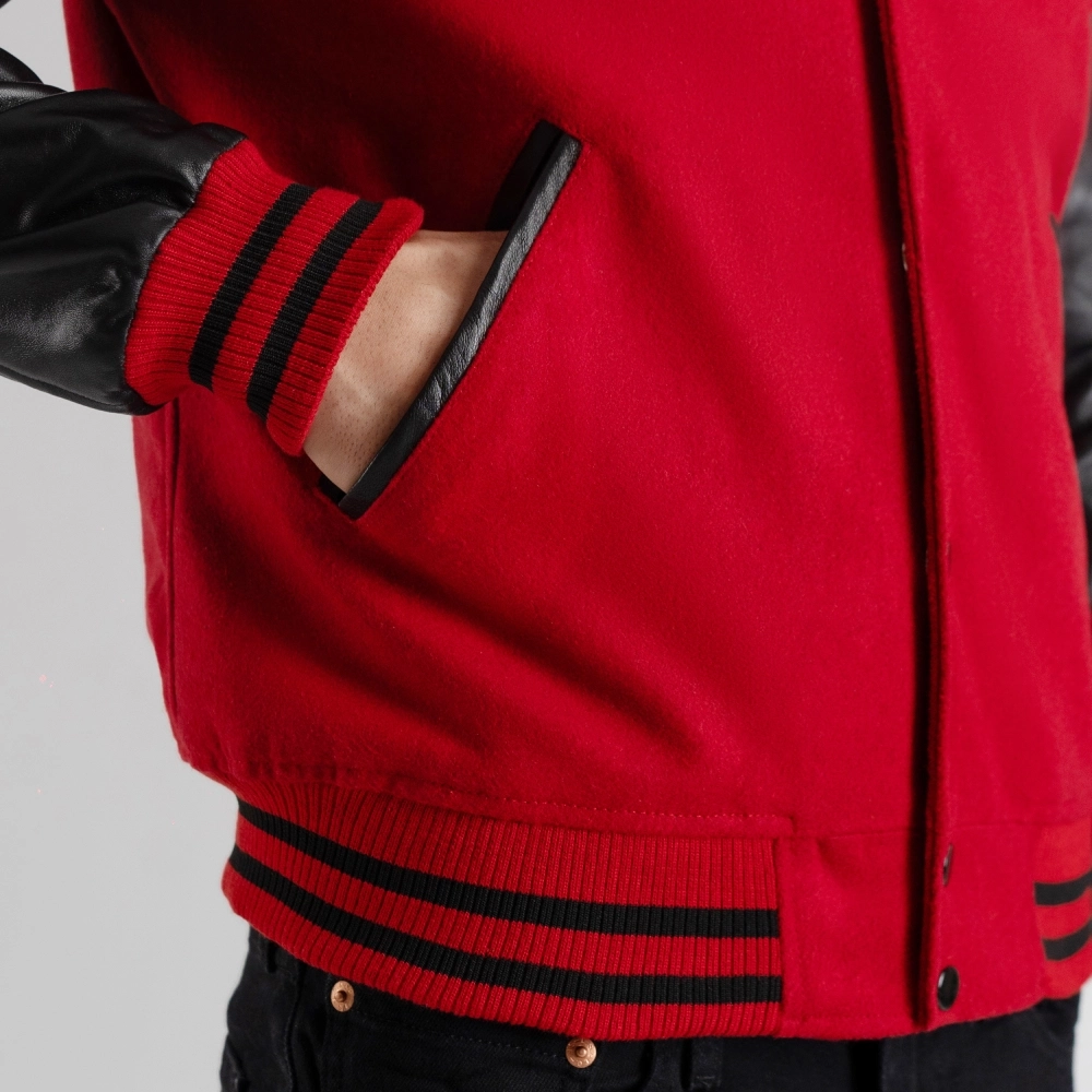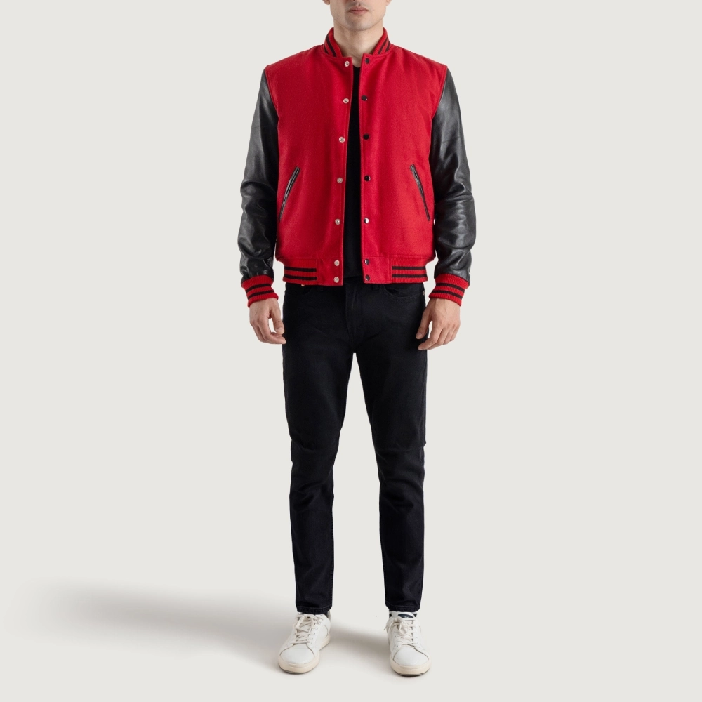 Men’s Red Wool & Black Leather Varsity Jacket