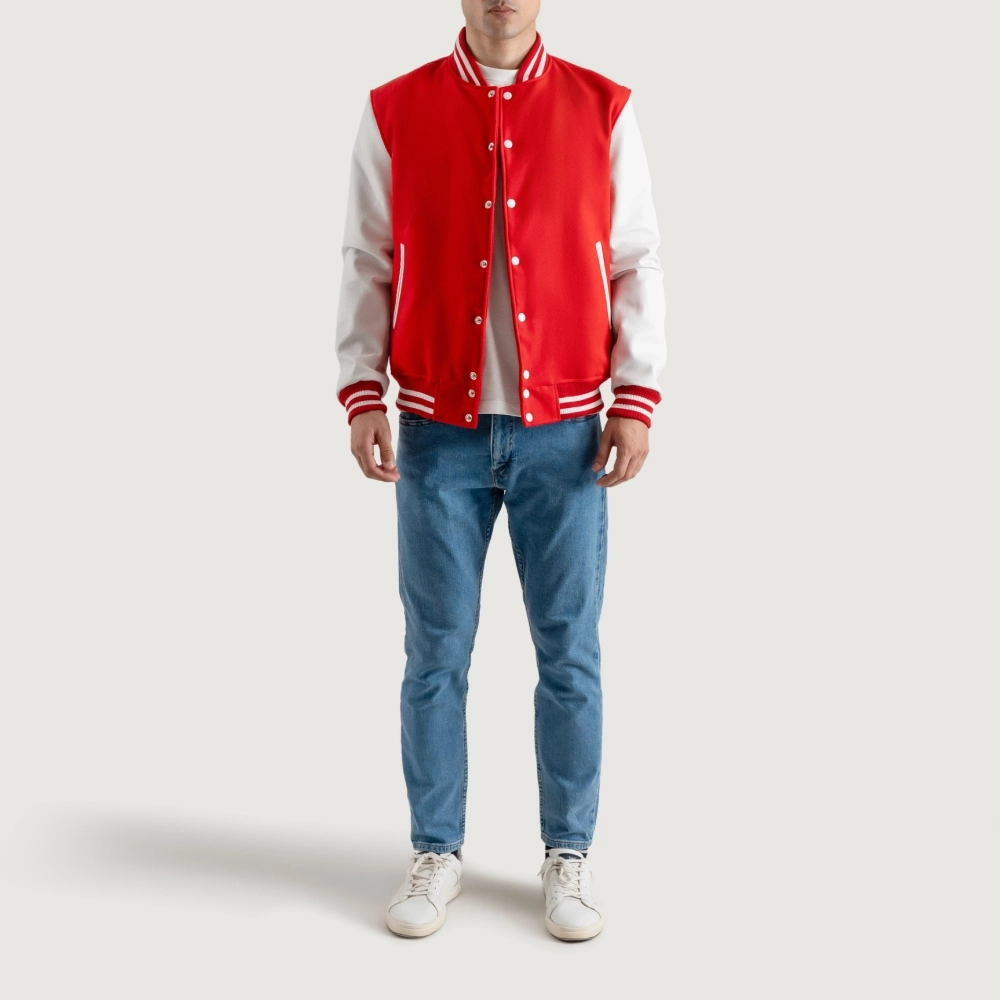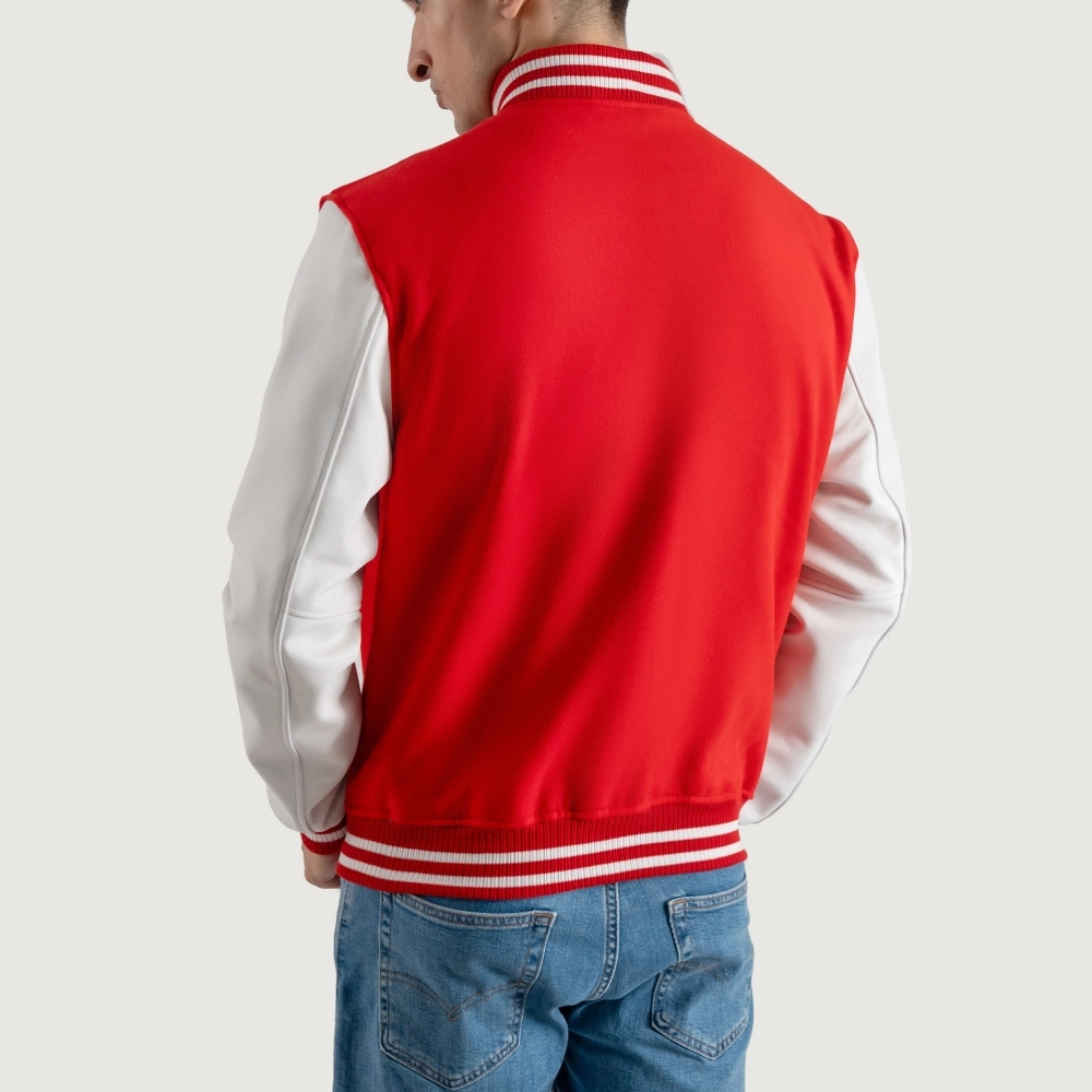 Be the first to review “Men’s Red Wool & White Leather Varsity Jacket”