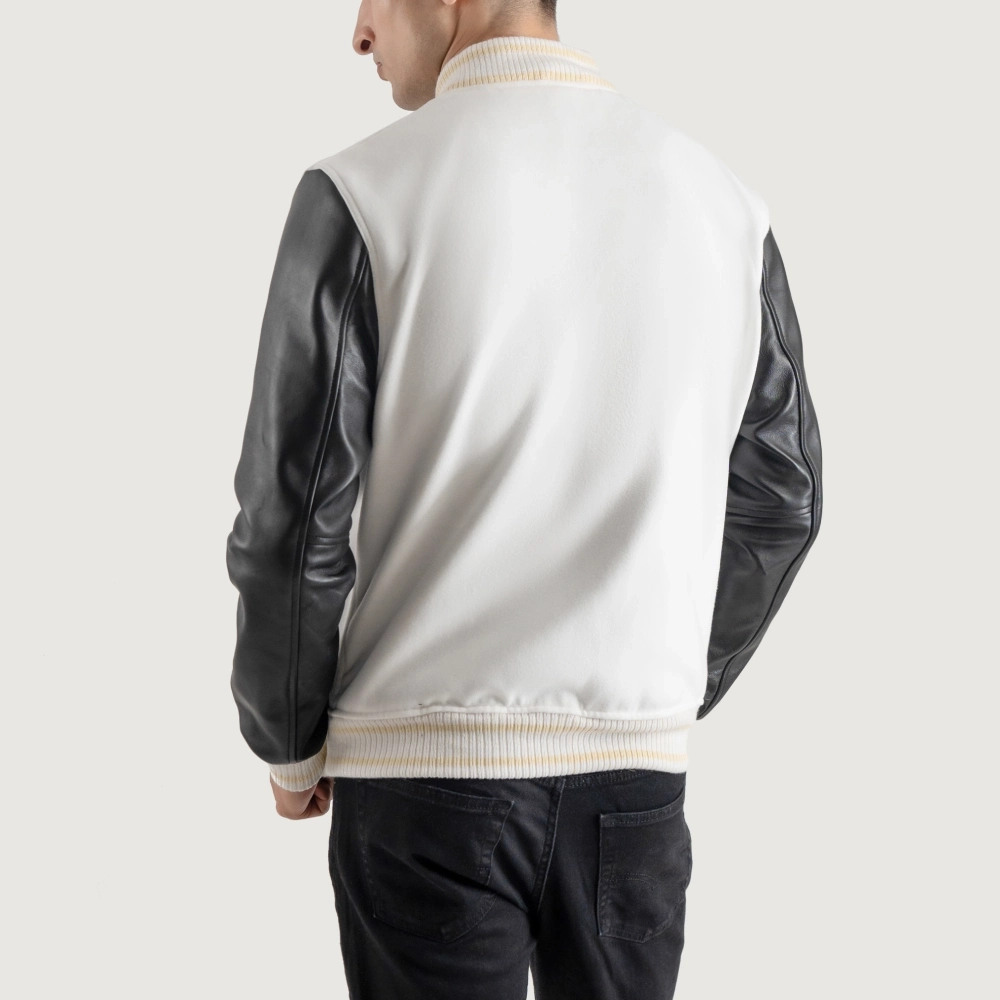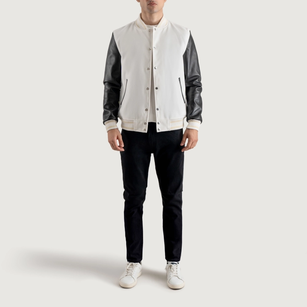 Men’s White Wool & Black Leather Varsity Jacket