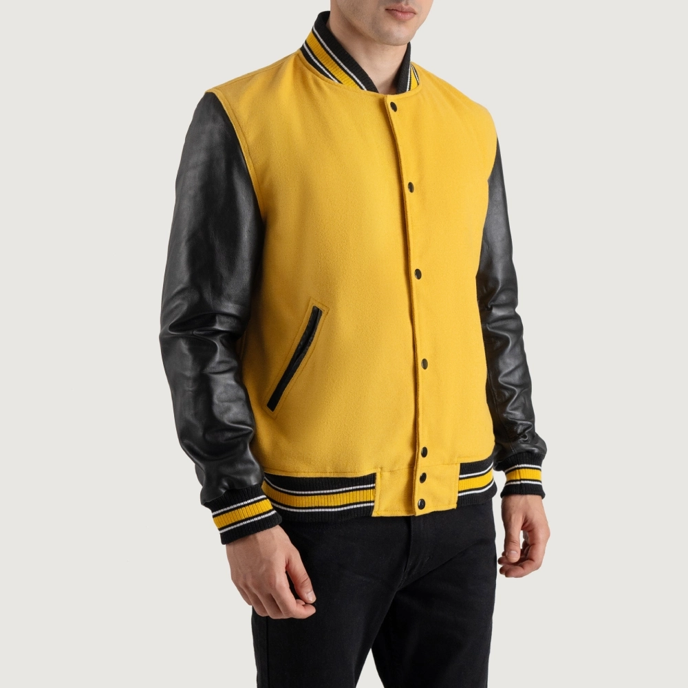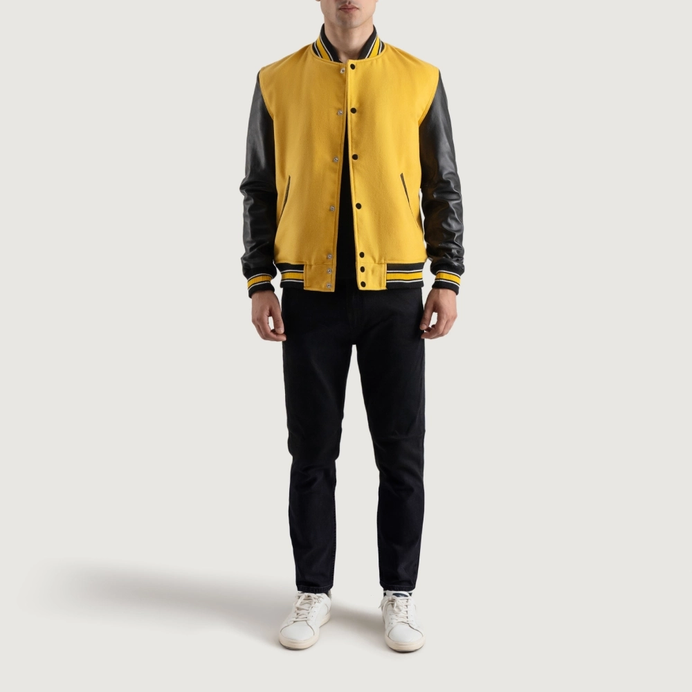 Men’s Yellow Wool & Black Leather Varsity Jacket