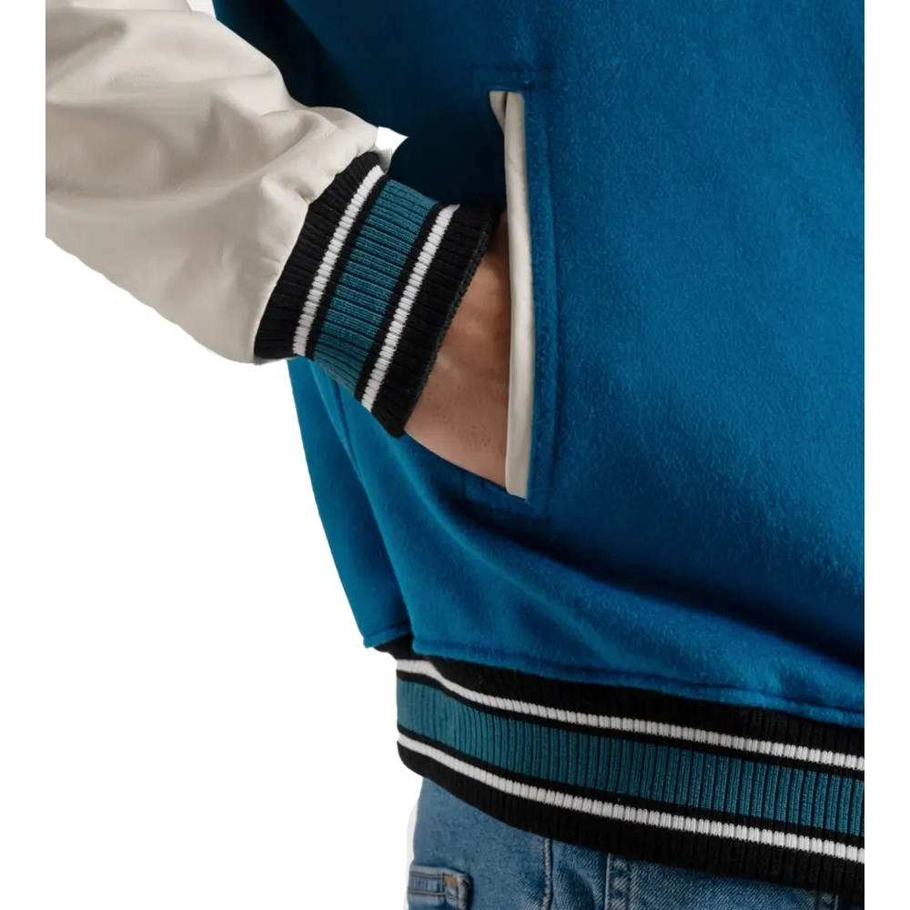 Women’s Deep Mid Sky Blue Wool & White Leather Varsity Jacket