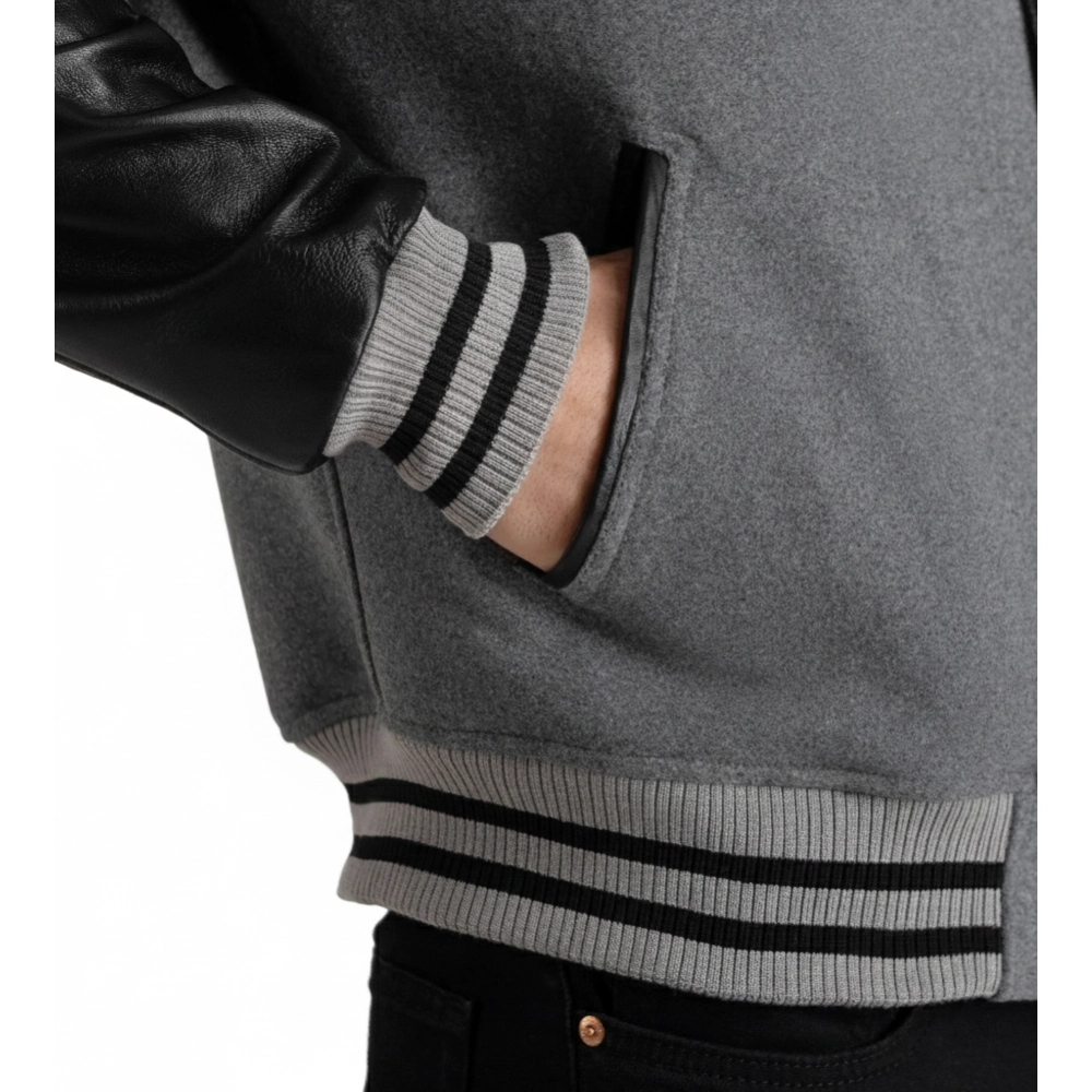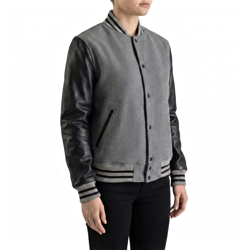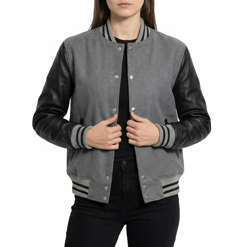 Be the first to review “Womens Grey Wool and Black Leather Varsity Jacket”