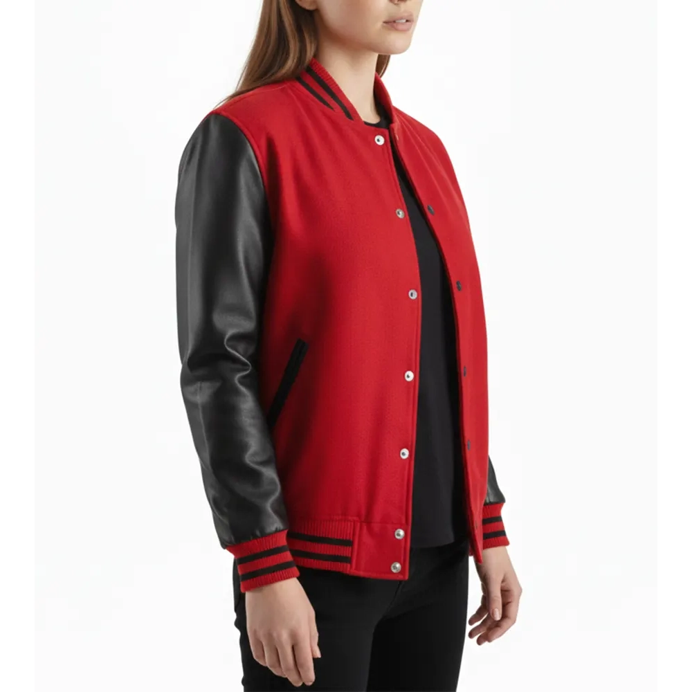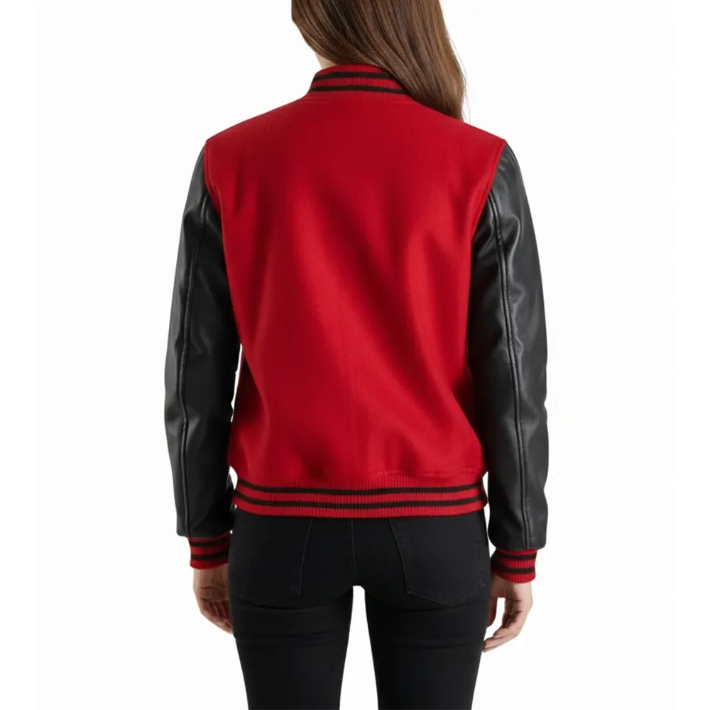 Women’s Red Wool & Black Leather Varsity Jacket