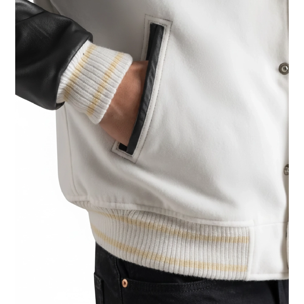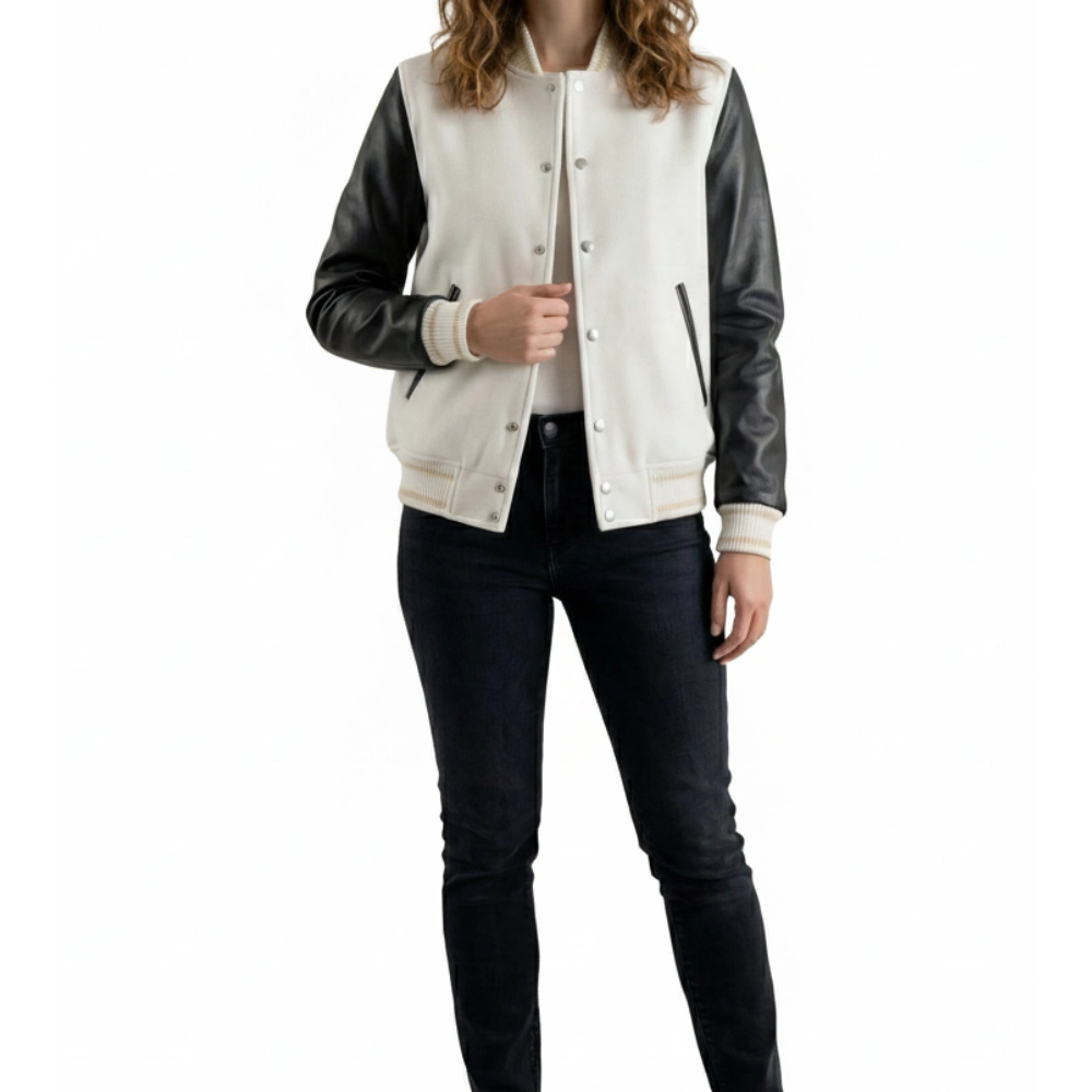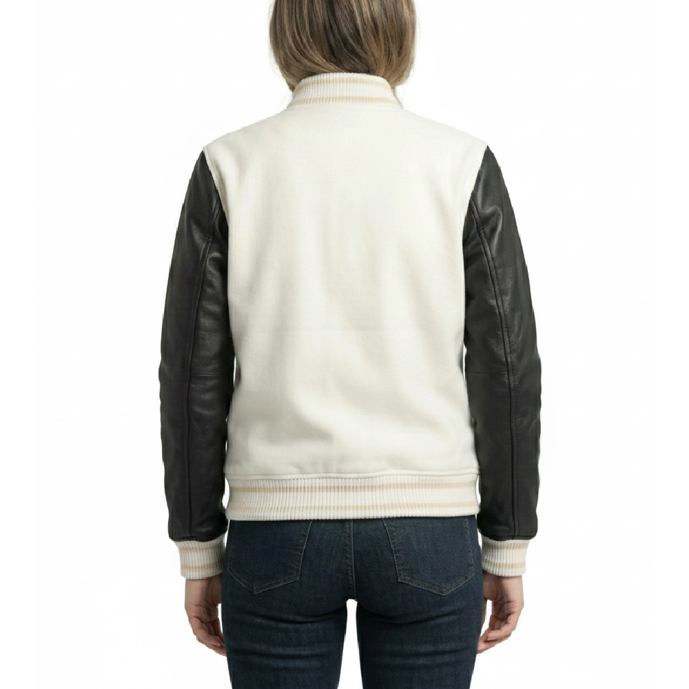 Women’s White Wool & Black Leather Varsity Jacket