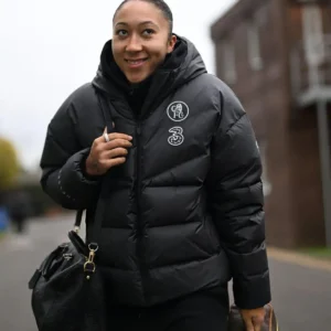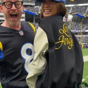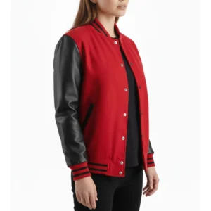 Women’s Deep Mid Sky Blue Wool & White Leather Varsity Jacket